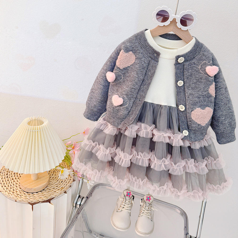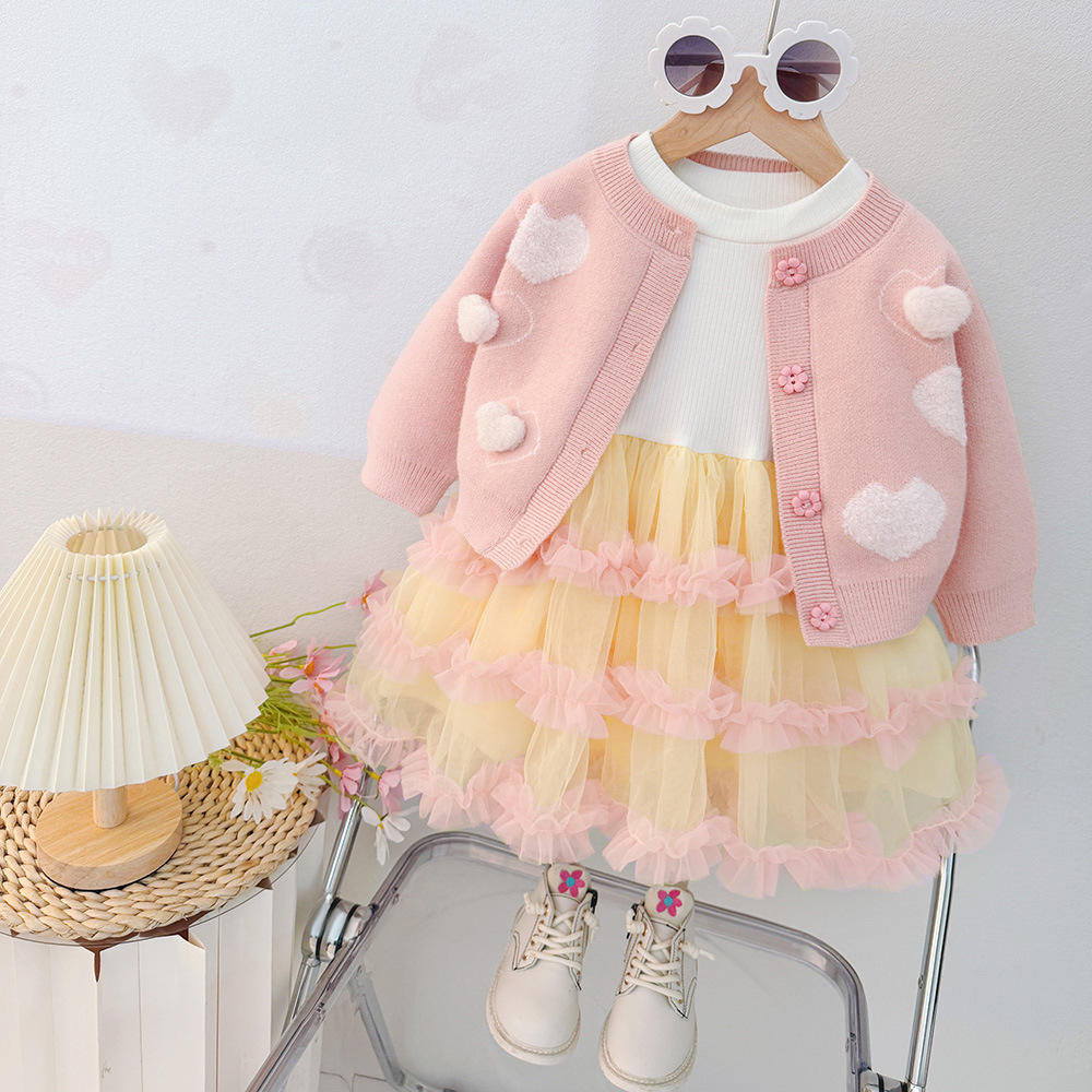 Autumn Casual Two-Piece Baby Girls Sweater & Dress Set