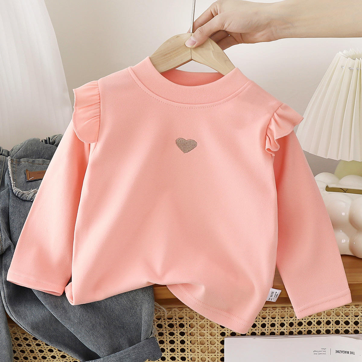 Baby Girls’ Warm Long Sleeve Lace Top – Autumn/Winter Solid Color Tee