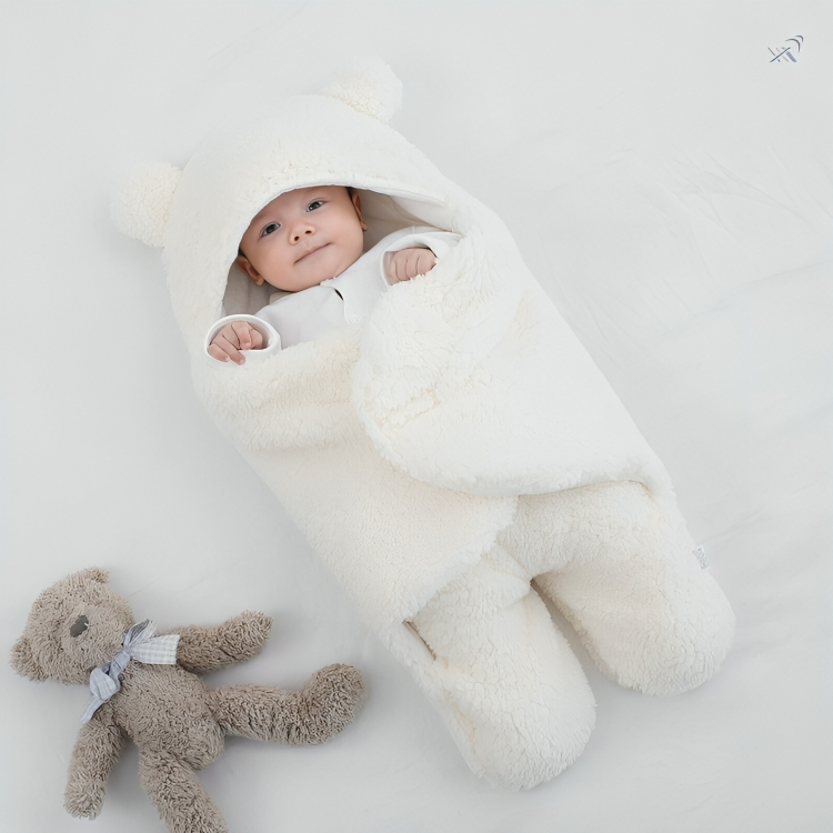 The adorable design adds a charming touch, making it perfect for home use, nighttime sleep, stroller rides, or outings during winter. With its easy-to-use wrap-around structure, parents can swaddle their baby quickly—ensuring a snug, safe, and soothing sleep environment.